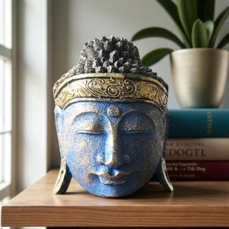 Bring a sense of calm and spiritual charm to your space with this hand-carved Buddha Head in a radiant blue shine finish. Made from lightweight albasia wood by artisans in Indonesia, each piece features a serene expression and subtle golden accents that evoke peace and presence.