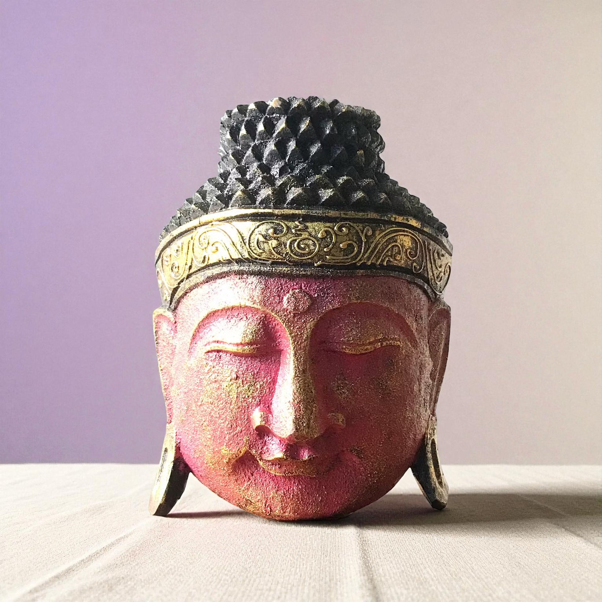 Bring a sense of calm and spiritual charm to your space with this hand-carved Buddha Head in a radiant red shine finish. Made from lightweight albasia wood by artisans in Indonesia, each piece features a serene expression and subtle golden accents that evoke peace and presence.