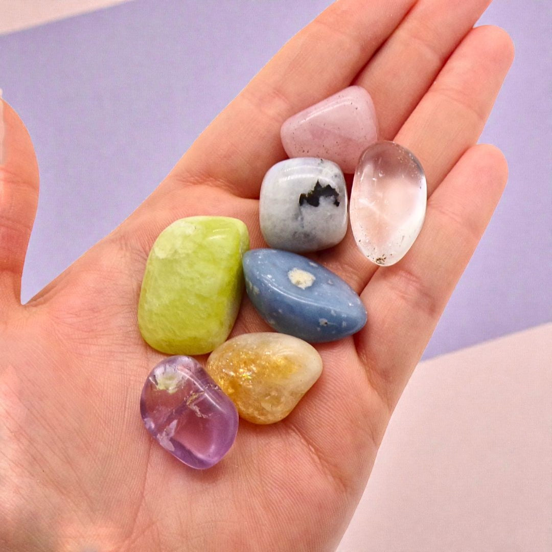 Invite serenity, clarity and gentle heart‑opening energy into your space with this Selenite Heart Healing Set. Each set includes seven natural gemstone tumble stones, thoughtfully paired with a hand‑carved Selenite heart charging dish...a luminous bowl designed to cleanse, recharge and amplify the energy of every crystal it holds.